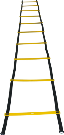 Ideal for improving coordination, explosive strength and quickness. PVC. Fitted with clips for connecting several ladders together end to end. 10 rungs. Carry bag. - length: 5 m - width: 42 cm - color: black/yellow