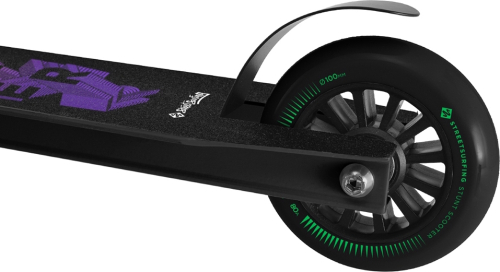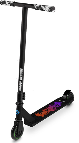 Suitable for beginners, the Freestyle Scooter Street Surfing Trickster Black Gum is a stylish-looking, affordable scooter perfect for learning all kinds of jumps and tricks. The scooter boasts sturdy construction, wide T-bar handlebars, a durable steel fork, a reinforced aluminum deck, and soft handle grips which allow for a firm and comfortable grip. The 100mm PU wheels with nylon cores and ABEC 5 bearings provide excellent riding characteristics. | ||||||||||||||||||||||||