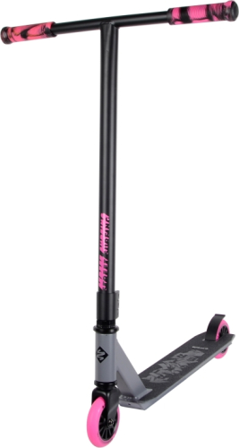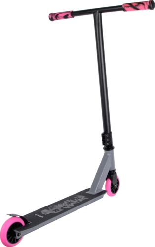 Suitable for beginners, the Freestyle Scooter Street Surfing Trickster Pink Dawn is a stylish-looking, affordable scooter perfect for learning all kinds of jumps and tricks. The scooter boasts sturdy construction, wide T-bar handlebars, a durable steel fork, a reinforced aluminum deck, and soft handle grips which allow for a firm and comfortable grip. The 100mm PU wheels with nylon cores and ABEC 5 bearings provide excellent riding characteristics. | ||||||||||||||||||||||||