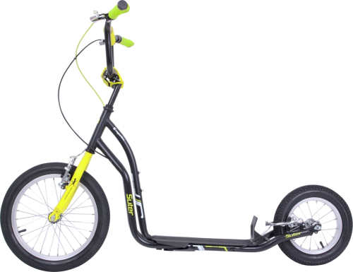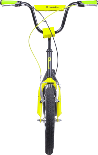 Kick Scooter inSPORTline Suter SE Black-Yellow ir stilīgs un daudzpusīgs skrejritenis. Piepūšamās 16" un 12" riepas nodrošina lielisku kontroli, savukārt nelielais svars padara skrejriteni viegli pārnēsājamu un uzglabājamu. Šis kikskūters ir piemērots ne tikai braukšanai pilsētā pa asfaltētu ceļu, bet to var izmantot arī uz veloceliņiem, zemes ceļiem un vidēji smagā apvidū. Pateicoties izmēram, garumam un regulējama augstuma stūrei, šis skrejritenis ir piemērots gan pieaugušajiem, gan bērniem (145 cm).