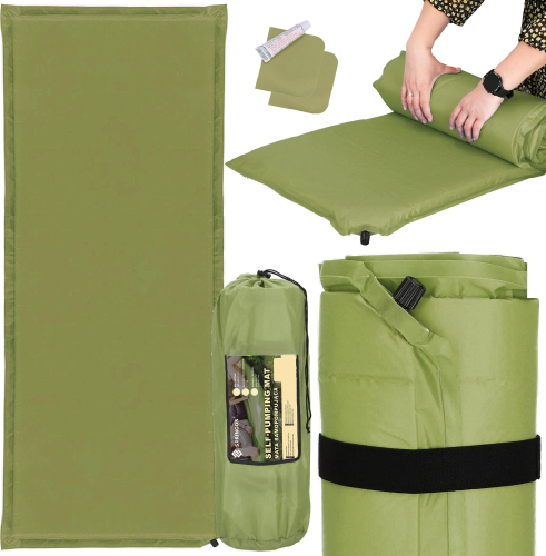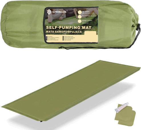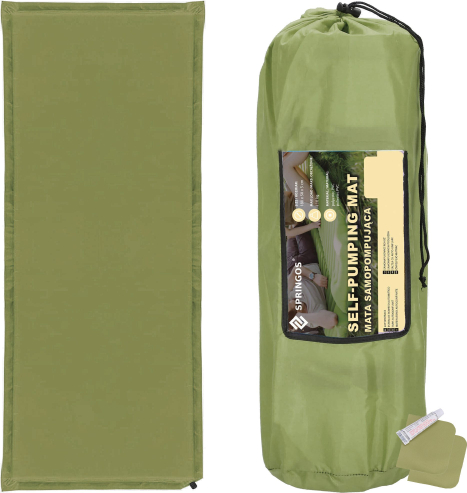 Самонадувающийся туристический коврик Springos PM046, 180 см, с чехлом, зеленый