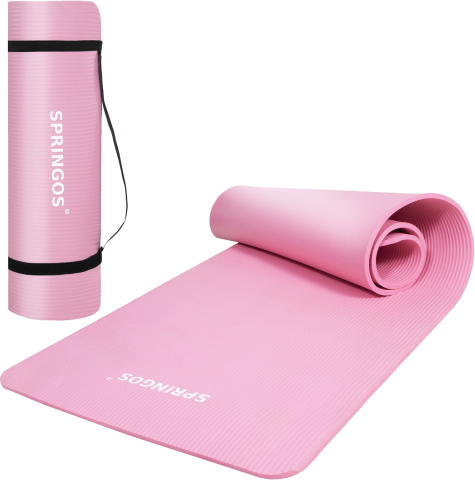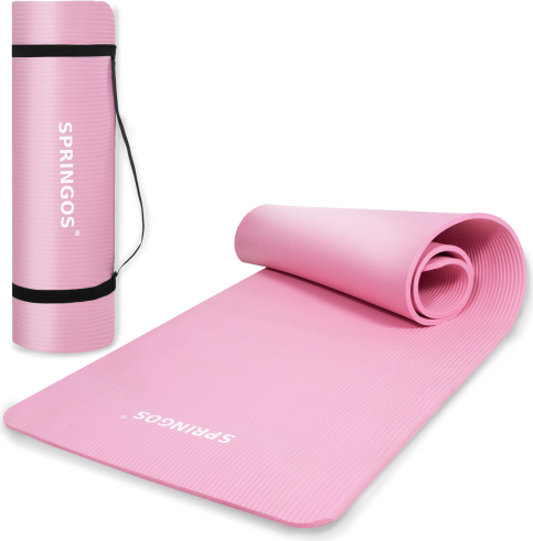 Параметры: Бренд: Springos Длина: 183 см Ширина: 61 см Толщина: 1 см Цвет: розовый Материал: NBR В КОМПЛЕКТЕ: Розовый коврик Ремень для переноски