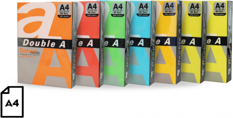 Цветная бумага Double A, 80 г, A4, 100 листов, Rainbow 5, 5 цветов (шафрановый, красный, попугай, темно-синий, лимонный) |