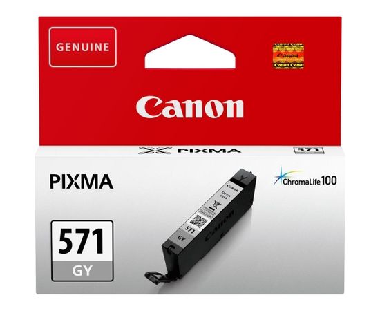 | Canon CLI-571GY Grey Ink Cartridge This Grey ink is used for printing photos. Combined with Canon photo paper it protects your photos from fading with ChromaLife100 system. The 7ml ink tank allows you to print up to 125* of 10x15cm colour photos. | ||||||||||||