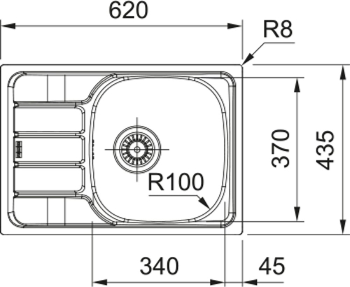 Franke SKN 611-62/44 Nerūsējošā tērauda iegriežama izlietne ar manualu ventīli 3½'' - gab.