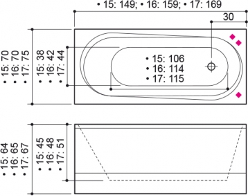 Balteco vanna Modul, 1690x750 mm, ar paneļiem un rāmi, ar sifonu, balta akrila