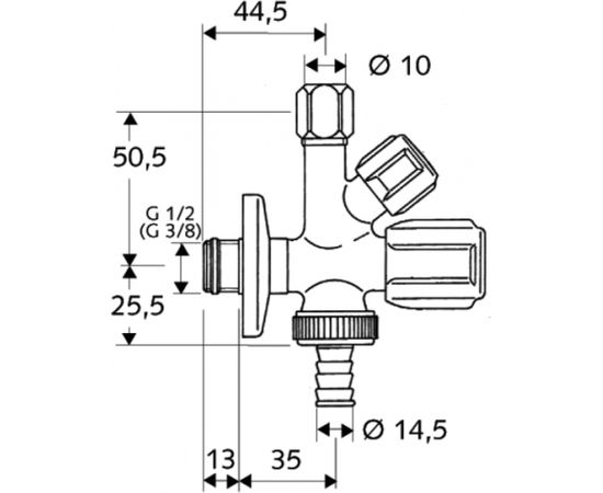 Schell stūra ventilis Comfort, 1/2"x10 mm, kombinētais ar štuceri, hroms