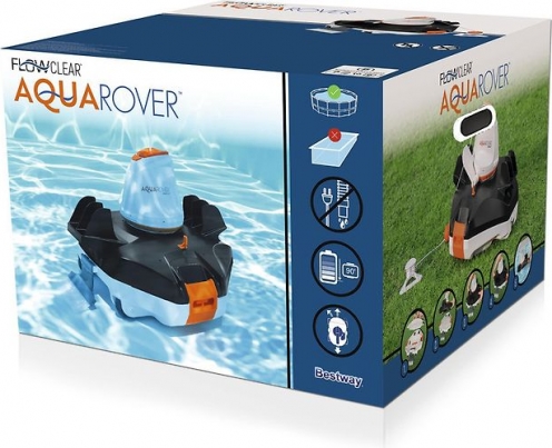 Kas var būt labāks par tīru peldbaseinu un bez piepūles! Bestway FlowClear Aquarover robotputekļsūcējs darbojas ar litija akumulatoru (lietošanas laiks 90 minūtes). Akumulatora uzlādes laiks ir 5-6 stundas. Robots maina virzienu, kad tas saskaras ar baseina sienu. Tīrīšanas robota filtrs var uzņemt ne vairāk kā 4 litrus atkritumu. Komplektācijā ietilpst Aquarover un uzlādes kabelis. Iespējas: