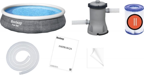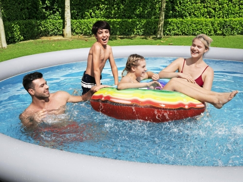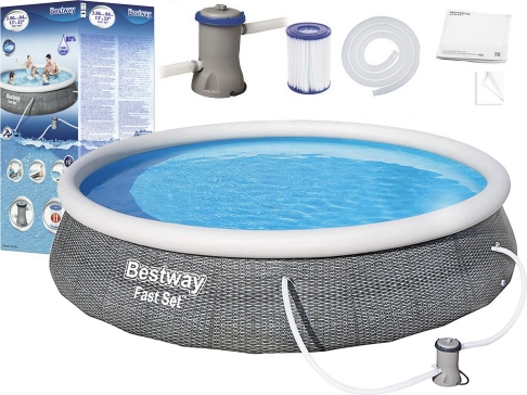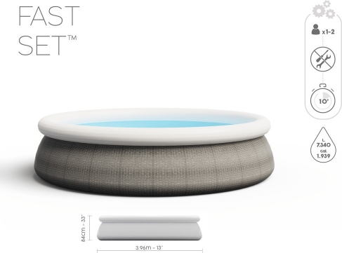 Вы иногда хотите освежиться в жаркий день, и у вас нет времени ходить в городской бассейн или кататься на озере? Наше предложение в этом случае - бассейн для отдыха в жаркие дни для всей семьи. Большой бассейн «Fast Set» с размерами 396x84 см и вместимостью 7,340 л легко подойдет всем, кто хочет освежиться. - Бассейн размером 396 см х 84 см Данные фильтрационного насоса: - Трехслойные, очень прочные боковые стенки из ПВХ и полиэстера «Tritech ™». Боковые стенки поддерживаются надувным кольцом.