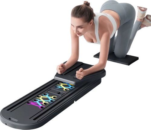 The Multifunctional Push-Up & Pilates Board inSPORTline Pushap Zen is a compact home gym for your living room – whether you're in the mood for push-ups, squats, planks, or a deep stretch using the resistance bands. Thanks to the color-coded lines on the board, you'll instantly know which muscle groups you're targeting – whether it's your back, chest, biceps, or triceps. Just choose the right position and get to work! The board also features a smart display with a motion sensor that keeps you moving by counting every rep of your workout!