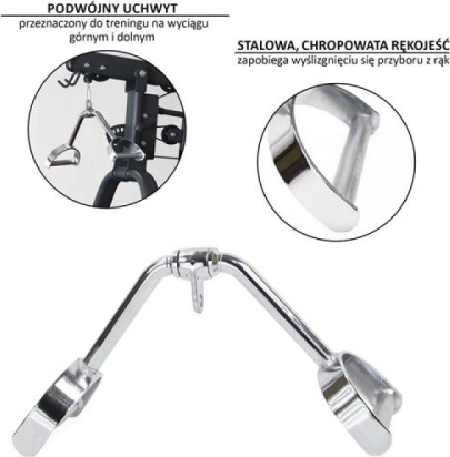 • The construction of the handle guarantees perfect hand position and forces proper movement during exercise. The wide spacing of the handle allows you to perform exercises at an alternative angle to the narrow grip, which gives the possibility of more effective training and the full development of the muscle group. It is made of high quality steel.