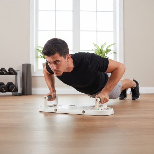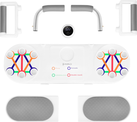 | DBP03 Daudzfunkcionāls dēlis vēdera preses vingrinājumiem un atspiešanās vingrinājumiem ar HMS skaitītāju Viens kompakts aprīkojums efektīvam treniņam mājās. DBP03 apvieno stabilu planku, daudzpozīciju atspiešanās rokturus un viedu skaitītāju ar optisko (IR) tuvuma sensoru, kas automātiski skaita atkārtojumus. Galvenās priekšrocības Viedais atkārtojumu skaitītājs — optiskais (IR) tuvuma sensors nosaka katru nolaišanos un automātiski skaita atkārtojumus ; displejā tiek parādīts sērijas rezultāts . Dažādas satvēriena iespējas – caurumu sistēma un krāsainas vadotnes ļauj ērti pielāgot rokturus konkrētām zonām: krūtīm, pleciem, tricepsiem, muguras muskuļiem. Korpusa treniņš – plata plāksne ar putu spilventiņiem stabilizē plankus un vēdera preses vingrinājumus. Komforts un drošība – neslīdoša tekstūra, putu rokturi un stingra pamatne. Kārtīgs – plāns profils ērtai uzglabāšanai. 3in1 – kā tas darbojas? Atspiešanās – rokturus ievieto dažādos caurumos: dažādos leņķos, lai uzsvērtu krūtis, plecus vai tricepsu. Planks un vēdera preses vingrinājumi – stabils roku/elkoņu atbalsts ļauj veikt statisku planku un izometriskos vingrinājumus. Skaitīšana un kontrole — jūs iedarbināt skaitītāju, un DBP03 skaita jūsu gājienus — ideāli piemērots progresam. Komforts un drošība Biezi, polsterēti spilventiņi ērtai saskarei ar ādu. Neslīdoša pamatne vairākos atbalsta punktos – dēlis "neklīst" pa grīdu. Ergonomiski, mīksti rokturi – drošs satvēriens pat garāku sēriju laikā. Kam? Iesācējiem un vidēja līmeņa lietotājiem, kuri vēlas stiprināt savu korsetes, krūšu, plecu, tricepsa un muguras muskulatūru, vienlaikus kontrolējot atkārtojumu skaitu bez skaitīšanas prātā. Parauga vingrinājumi Atspiešanās: šauras, klasiskas, platas; ar roktura rotāciju. Planks: klasiskā, augsta/zema uz apakšdelmiem, planks ar pāreju. Izometriska pozīcijas noturēšana ar laika intervāliem. Muguras un plecu aktivizēšana balstos (atspiešanās uz lāpstiņas). Specifikācija: Garums: 37,5 cm Platums: 58 cm Putuplasta spilventiņi: 10,5 x 20,5 cm Attālums starp atspiešanās rokturiem (vidējā pozīcijā): 43 cm Atspiešanās un dēļa rokturu diametrs: 3 cm Skaitītājs: atkārtojumu skaits Dažādi satvēriena varianti: jā Materiāls: PP + TPE + tērauds Maksimālais lietotāja svars: 150 kg Svars: aptuveni 1,3 kg |