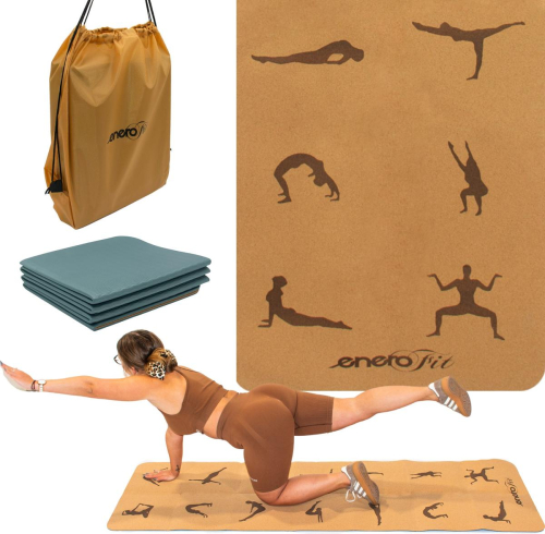Korķa salokāms jogas paklājiņš 183x61x0,4cm ENERO FIT