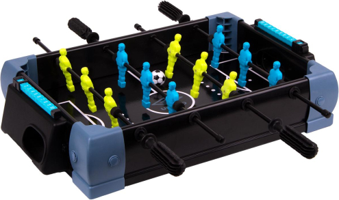 Z zestawem gier 5 w 1 od Umbro możesz przeżyć wielkie emocje związane z rywalizacją i rozgrywkami na najwyższym poziomie nawet we własnym domu. Możesz zagrać w kręgle, cymbergaj, tenis stołowy, piłkarzyki albo w koszykówkę. PIŁKARZYKI TENIS STOŁOWY CYMBERGAJ KRĘGLE KOSZYKÓWKA 5W1 UMBRO to wielofunkcyjny stół do gier dla graczy w różnym wieku i o różnym poziomie sprawności. Wszystkie rodzaje gier posiadają pełne wyposażenie do wszystkich plansz, a więc nie wymagają dokupowania dodatkowego sprzętu. A mini stół może być pierwszym krokiem do zdobycia umiejętności i opracowywania strategii, aby potem rozpocząć grę na pełnowymiarowym sprzęcie. Może być świetnym sposobem na zabawy z dziećmi, na wieczorne spotkania z przyjaciółmi, czy leniuchowanie w ogrodzie. Nie każdy wielbiciel piłkarzyków może pozwolić sobie na znalezienie w mieszkaniu miejsca na duży stół, dlatego ciekawym pomysłem na prywatne rozgrywki mogą być mini piłkarzyki, czyli niewielki stolik, który bez problemu można ustawić na stole lub na podłodze, a po skończonej grze zapakować go do schowka lub odstawić na szafę. Ta propozycja jest idealna dla dzieci, które znacznie łatwiej poradzą sobie z manewrowaniem drążkami nawet przy zmniejszonej wersji stołu. 4 pozostałe plansze pozwolą na rozegranie turnieju tenisa stołowego, hokeja - cymbergaja, kręgli, a nawet koszykówki. Z zestawem 5w1 UMBRO nie straszna Ci będzie nuda, w każdej chwili możesz zmienić dyscyplinę i rodzaj rozgrywek. Parametry: