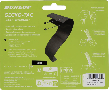 Tennis racket overgrip DUNLOP GECKO-TAC 3pcs, black