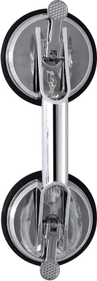 | Atbalsta rokturi ar piesūcekņiem var izmantot uz visām gludām un līdzenām virsmām. Pateicoties diviem lieliem piesūcekņiem, tas nodrošina drošu noturību līdz 100 kg. Ergonomiska satveršanas zona ar rievām pirkstiem. Rokturis paredzēts tikai pagaidu lietošanai un jāpārbauda pirms katras lietošanas reizes. Turēšanas jauda ir atkarīga no virsmas stāvokļa. Izgatavots no ABS plastmasas un termoplastiskajiem elastomēriem (TPE). Kopējais garums aptuveni 33 cm, satveršanas zonas garums aptuveni 10.5 cm, augstums aptuveni 7 cm, piesūcekņa diametrs aptuveni 12.5 cm. |