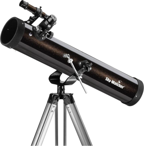 Телескоп Sky-Watcher N 76/700 : Этот телескоп типа Ньютон делает наблюдение небесного пространства легкой игрой даже для совсем начинающих любителей астрономии. Апертура 76 мм предоставляет впечатляющий обзор ночного неба, и позволяет, например, видеть Луну в удивительно подробном виде. Телескоп можно собрать за несколько минут, без каких-либо предварительных знаний или специальных инструментов, и он тут же готов к использованию. В комплект поставки входит: