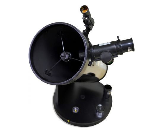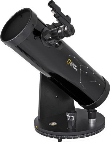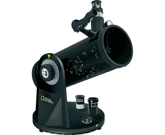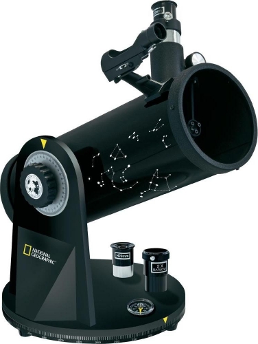 Bresser National Geographic 114/500 – это рефлектор Ньютона, установленный на азимутальную монтировку Добсона. Данная модель отличается качественной оптикой, простым управлением и очень компактными размерами. С помощью этого телескопа вы сможете увидеть двойные звезды с разделением 1,5" и более, десятки шаровых скоплений, планетарных и диффузных туманностей, все объекты каталога Мессье и наиболее яркие объекты из каталога NGC. Оптика Диаметр главного зеркала составляет 114 мм, благодаря чему телескоп собирает в три раза больше света, чем модели с апертурой 76 мм, а значит, вы сможете увидеть больше астрономических объектов и их деталей. Телескоп комплектуется двумя окулярами (6 мм и 20 мм) и двукратной линзой Барлоу. Диапазон увеличений уже в базовой комплектации составляет 25–167 крат. Искатель с красной точкой позволяет легко и быстро навестись на интересующий вас астрономический объект. При изучении Луны рекомендуется использовать лунный фильтр (в комплекте). Этот аксессуар уменьшает яркость свечения Луны, поэтому детали рельефа становятся более контрастными и четкими. Монтировка Оптическ ая труба устанавливается на монтировку Добсона. Эта монтировка очень проста в сборке и не вызовет трудностей даже у новичков. Встроенный в основание монтировки компас значительно упрощает ориентирование в ночном небе. Комплектация: