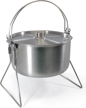 Ietilpīgs katls gatavošanai uz ugunskura. Iespējams uzstādīt uz kājām vai pakarināt aiz roktura. Ražots no augstas kvalitātes nerūsējošā tērauda, tajā pašā laikā salīdzinoši viegls. Divi rokturi, kas atrodas ārpus smaguma centra, nodrošina drošu turēšanu. Materiāls: Nerūsējošais tērauds 304 Izmēri: Ø 29,5 H 16 cm Tilpums 10 litri Svars 2,950 g Ar vāku Augstums virs zemes ar kājām (poda apakšpuse) 18 cm |