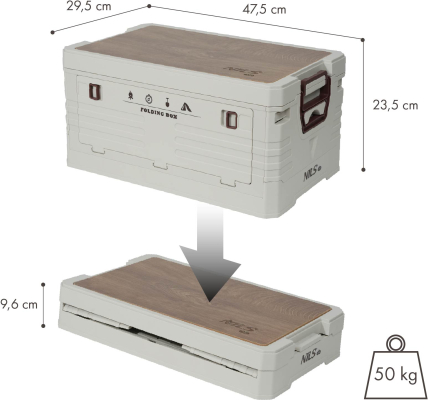 | NCB4002 saliekamā ceļojumu kaste – daudzfunkcionāls risinājums glabāšanai un darbam Kompakts dizains — vietu taupošs un mobils NCB4002 ir moderna ceļojumu kaste , kas apvieno funkcionalitāti, komfortu un izturību . Tās salokāmais dizains ļauj to ātri samazināt līdz tikai 9,6 cm , tādējādi ievērojami atvieglojot uzglabāšanu un transportēšanu. Tā ir ideāli piemērota lietošanai mājās, garāžā, automašīnā vai pat kempingā , kur katrs centimetrs vietas ir svarīgs. Papildu koka galda virsma – kumode un galds vienā NCB4002 unikāla iezīme ir tā izvelkamā koka galda virsma , kas ļauj kasti ātri pārveidot par izturīgu galdu . Tā ir ideāli piemērota kempingam, ceļojumiem, dārzam vai darbnīcai – to var izmantot kā darba virsmu, kafijas galdiņu vai ēdamzonu ārpus telpām . Tas padara NCB4002 ne tikai par uzglabāšanas konteineru , bet arī par praktisku āra aprīkojumu . Modulārs dizains — elastīga pielāgošana jūsu vajadzībām. NCB4002 tika izstrādāts, ņemot vērā modulāru lietošanu. Tā forma un konstrukcija ļauj stabili sakraujot vairākas kastes. Tas ļauj efektīvi organizēt telpu gan garāžā, gan automašīnas bagāžniekā, gan kempingā. Kastu sakraušana palielina uzglabāšanas ietilpību, neaizņemot papildu vietu, un izturīgā konstrukcija nodrošina stabilitāti pat pie lielām slodzēm. Liela ietilpība – 32 litri izmantojamā platība Kastes ietilpība ir 32 litri , kas ļauj ērti uzglabāt dažādus priekšmetus, piemēram , instrumentus, apģērbu, kempinga aprīkojumu, auto piederumus un pārtiku . Pateicoties pārdomātajam dizainam, tā ir lieliski piemērota garāžai, pagrabam, automašīnas bagāžniekam, kā arī kempingam un ceļojumiem . Stabila konstrukcija – izturība gadiem ilgi Kaste ir izgatavota no augstas kvalitātes polipropilēna (PP) , kaste ir izturīga pret mehāniskiem bojājumiem, laikapstākļiem un intensīvu lietošanu . Pateicoties izturīgajām sienām un stabilajai konstrukcijai, tajā var droši uzglabāt smagākus priekšmetus, neuztraucoties par deformāciju vai bojājumiem. Lietojumprogrammu daudzpusība Pateicoties tā funkcionalitātei un izturībai, NCB4002 noderēs daudzās situācijās: Kempings un ceļošana – kā galds un konteiners kempinga aprīkojumam, pārtikai un apģērbam. Automašīna un transports — ideāli piemērots bagāžnieka organizēšanai un instrumentu glabāšanai. Mājas un dzīvoklis – lielisks risinājums rotaļlietu, dokumentu, sezonas apģērbu glabāšanai . Garāža un darbnīca – ideāli piemērota instrumentu, kabeļu un automašīnas kopšanas piederumu glabāšanai . Dārzs un terase – kalpo kā mobils galds atpūtai vai darbam brīvā dabā. Ergonomisks dizains un lietošanas ērtums Kastes svars ir tikai 2,14 kg , kas apvienojumā ar ergonomiskiem rokturiem atvieglo tās pārnēsāšanu un transportēšanu . Tās stabilā konstrukcija nodrošina drošu satura glabāšanu , un ātrā locīšanas un atlocīšanas sistēma ļauj ērti pielāgot to pašreizējām vajadzībām. Specifikācija: Materiāls: polipropilēns (PP) + koka virsma Izmēri atlocītā veidā: 47,5 x 29,5 x 23,5 cm Izmēri salocītā veidā: 47,5 x 29,5 x 9,6 cm Tilpums: 32 l Svars: 2,14 kg Maksimālā slodze: 50 kg |