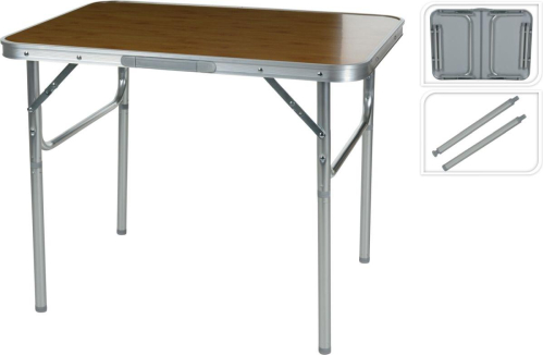 | STÓŁ KEMPINGOWY, BLAT Z MDF WODOODPORNY, OBRZEŻ ALUMINIOWA, SKŁADANA RAMA METALOWA W KOLORZE SREBRNYM, ROZMIARY: 75X55X25/60CM, BLAT Z WYKOŃCZENIA WYGLĄDAJĄCEGO BAMBUSA, ŚREDNICA RURY ALUMINIOWEJ 25 MM, WAGA NOŚNA 25 KG. 750X550X35MM | ||||||||||||||||