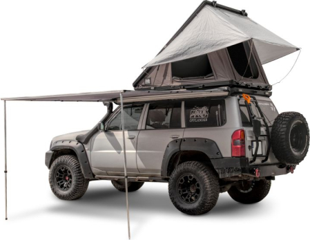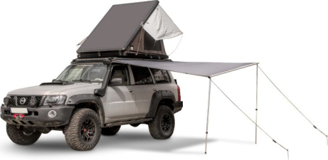 • The canopy extends around the car up to 270°, creating a large, shaded space where you can rest peacefully on hot days. Thanks to the fact that the awning has fully foldable legs, you can make full use of the entire space.
