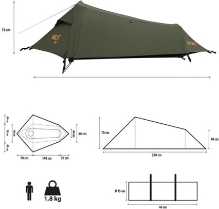 Telts NC2501 TENT ULTRA LIGHT SKYAIR 1 GREEN NILS CAMP