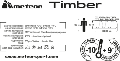 Temperatūras diapazons: komforts +9oC, ekstremāls -10oC