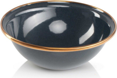 MESA bļoda ar bagātīgu, klasisku emaljas pārklājumu, papildināta ar bronzas toņa nerūsējošā tērauda maliņu.