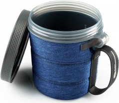 Liela izmēra krūze ar skrūvējamu vāku un siltumizolējošu neoprēna apvalku un neslīdošu apakšu. Krūzes sānā iestrādāta gradācijas skala, kas noderēs piemēram, lai nomērītu ūdens daudzumu sublimētajai pārtikai. Specifikācija:
