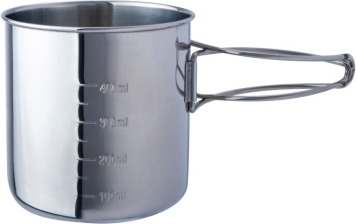 Nerūsējošā tērauda krūze, kas izgatavota no kvalitatīva 18/8 tērauda. Salokāmais rokturis ļauj to ērti uzglabāt mugursomā, bet mērskala ļauj precīzi nomērīt nepieciešamo ūdens daudzumu. Roktura stiprinājums ir izturīgs un plats, lai nodrošinātu ērtu turēšanu.