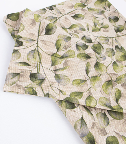 Tablecloth HOLLY 43x116cm, poplar leaves. 80% cotton, 20% polyester. CARE: can be washed in a washing machine at a temperature of 30 degrees.