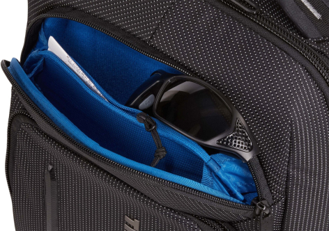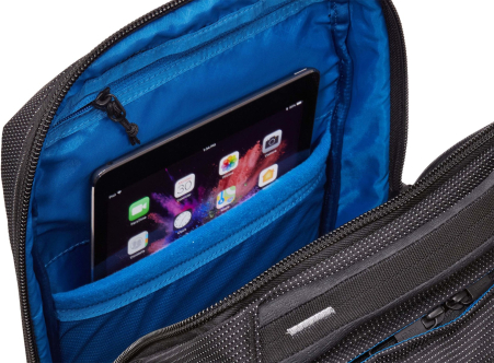 | Protect and organize smaller items while keeping them easy to access in the heat-molded, crush-resistant SafeZone compartment with zippered storage pocket. Protect a 14" laptop in dedicated, padded compartment with patented SafeEdge construction. Organize small electronics and accessories in the front panel with slip pockets, elastic loops, a zippered mesh pocket and the PowerPocket cord management system for charging on the go. Protect a 10.1" tablet in the dedicated, soft-lined storage sleeve. Main compartment organization includes a zippered mesh pocket and a large slip pocket for separating belongings. Store water bottles or an umbrella in the gusseted, zippered side pockets. Safeguard your identity and personal information with a RFID blocking pocket . Securely attach backpack to rolling luggage with the pass-through panel. Durable design with raised rails for added protection, lightweight, wear-resistant material and oversized #10 zippers. More information: thule-crossover-2-backpack-20l-_-3203838 (external link) | ||||||||||||||||||||||||||||||||||||||||||