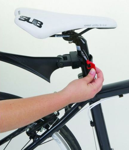 Aizmugurējais dubļusargs stiprināms pie velosipēda sēdekļa stutes (piemērots stutēm diametrā no 24 līdz 36 mm). Pavisam viegli un ātri uzstādāms - nav nepieciešams izmantot nekādus instrumentus. Dubļusargs pielāgojams augstumā vienā punktā. Dubļusarga garums: 540 mm; Platums: 42 mm.