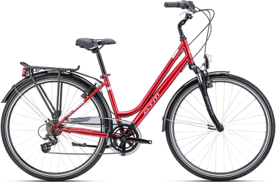 | For women, 17", matt burgundy Frame: Hi Ten, 17", 430 mm Fork: Suntour CR85, 700C Shifters: Shimano SL-RV300/7 sp. Rear derailleur: Shimano RD-M310 Cassette: Shimano MFTZ 500/7,14-28 Crankset: Lasco 46T, 170 mm Breaks: Alhonga V-brake Rims: CTM ZX-lite, 622x19 BA, 32H Tyres: 700 x 40C reflex line Hubs: Matrix alloy 32H QR black Bottom bracket: NECO 122,5 mm Pedals: VP 872 Chain: KMC Z50 Stem: CTM adjustable, 90/25,4 mm Handlebars: Comfort bar, 610/25,4 mm Headset: Neco steel 1-1/8" Saddle: CTM lady comfort Seatpost: Zoom SP-200, 300/28,6 mm Speeds: 7 |