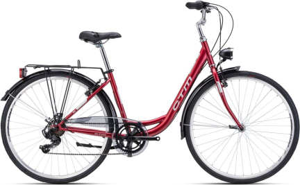 | For women, 17'', matt dark red pearl / silver Frame: Hi Ten, 17'' (430mm) Fork: Hi ten- unicrown 700" Shifters: Shimano RS 35/7 speed Rear derailleur: Shimano RD-TY500 Cassette: Shimano MFTZ 500/7,14-28 Crankset: Lasco, 46T Breaks: Alhonga V-brake Rims: Remerx DRAGON, 622x19 N, 36H Tyres: 700x38C Hubs: Matrix alloy 36H silver Pedals: SP 877 Chain: KMC Z33 Stem: Zoom C40, 40/25,4 mm Handlebars: Zoom NR24, 610/25,4 mm Headset: Neco steel 1-1/8" Saddle: CTM lady comfort Seatpost: Zoom SP-200, 300/28,6 mm Speeds: 7 |