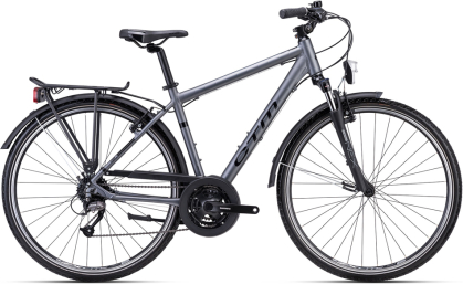 | Men's, 19", brushed steel Frame: alu 6061, 19", 480 mm Fork: Suntour NEX, HLO 63 mm 700C Shift levers: Shimano STEF5002/8 sp. Rear derailleur: Shimano Altus RD-M370 Front derailleur: Shimano FD-TY310 Brake: Tektro V-brake Cassette: Shimano HG200/8, 12-32 Crankset Shimano FC-TY301, 48-38-28T, 175 mm Rims: CTM ZX-lite, 622 x 19 BA, GBS, 32H Tyres: 700 x 40C reflex line Hubs: CTM alloy 32H QR black Bottom bracket: NECO 122,5 mm Pedals: SP 510 Chain: KMC Z7/114L Stem: CTM adjustable, 90/25,4 mm Handlebars: Comfort bar HB-TR1, 640/25,4 mm Headset: Neco steel 1-1/8" Saddle: CTM man comfort Seatpost: CTM SP-602,350/31,6 mm Speeds: 24 speed Weight: 16.2 kg |