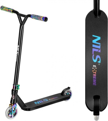 | HS024 Nils Extreme ir augstas veiktspējas triku skrejritenis, kas paredzēts bērniem, pusaudžiem un pieaugušajiem. Stuntu skrejriteņa rāmis un stūre ir izgatavoti no stipra un izturīga tērauda, pateicoties kam HS024 ir pielāgots lēcieniem un sarežģītām evolūcijām. HS024 ir lieliski piemērots asfalta virsmām un bruģētām ietvēm. 110 x 24 mm riteņi un ABEC9 klases gultņi ļauj nodrošināt optimālu iekārtas veiktspēju, līdz ar to izcilu darbības efektivitāti. Savukārt aizmugurējā bremžu pēda nodrošina maksimālu lietošanas drošību un ļauj nekavējoties apstādināt skrejriteni. Klienti, izvēloties šo modeli, pievērš uzmanību tā izturībai un lietošanas vienkāršībai. Trikaču skrejritenim nav konstrukcijas saliekamā mehānisma vai stūres augstuma regulēšanas sistēmas - šādi risinājumi varētu vājināt visu konstrukciju, kas, protams, nav vēlams augstas veiktspējas aprīkojuma gadījumā, kur izturība ir pamatā. Veicot trikus, tehnika saskaras ar ļoti lielu slodzi. Skrejritenim ir stingrs, piecu kameru klājs un plata stūre, kas pastiprināta ar papildu šuvēm, kas ļaus apmierinoši veikt trikus gan iesācējiem, gan pieredzējušiem stutteriem. Specifikācija: Materiāls: tērauds, alumīnijs Izmēri: garums: 70 cm platums: 57,5 cm augstums: 83,5 cm Stūres augstumu nevar regulēt Salokāms: nē Bremzes: jā, aizmugurējās kājas bremzes Platformas izmēri: garums: 39 cm platums: 11 cm Materiāla veids uz platformas: alumīnijs Stūres materiāls: tērauds Dakšu materiāls: alumīnijs Riteņi: PU 110 x 24 mm, alumīnija serde Gultņi: ABEC9 Maksimālā slodze: 100 kg Produkta svars: 3,8 kg Atpūta, frīstails, triks |