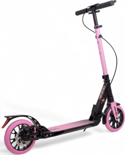 Thanks to the front and rear suspension, the scooter can deal with bumps in the road, ensuring a comfortable ride on all kinds of terrain. The height of the handlebars can easily be adjusted to three different positions to adapt to your riding style. Made of high-quality PU material, the 200mm wheels with an 87A hardness are designed to provide a comfortable riding experience on asphalt roads.