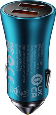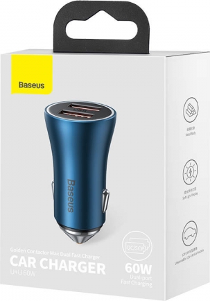 Baseus Golden Contactor Max car charger, 2x USB, 60W (blue)