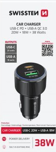 Swissten Автомобильное зарядное устройство USB-C PD / USB 38W