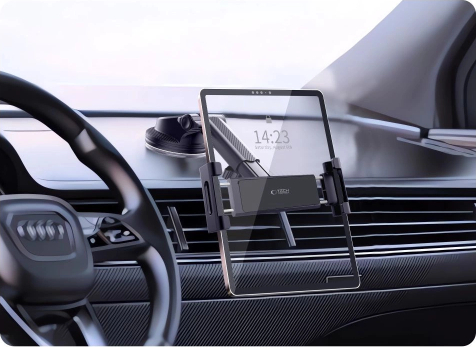 Tech-Protect V4 - это инновационный автомобильный держатель для планшетов, предназначенный для установки на кабину автомобиля. Оснащенный прочным зажимным механизмом с силиконовыми противоскользящими накладками, он надежно удерживает устройства шириной от 141 до 280 мм.
