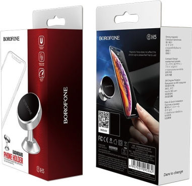 Aвтомобильный держатель телефона Borofone BH5 Platinum, крепится на панель приборов, магнитный