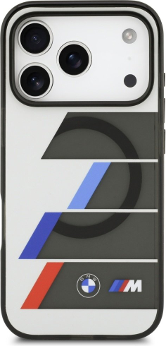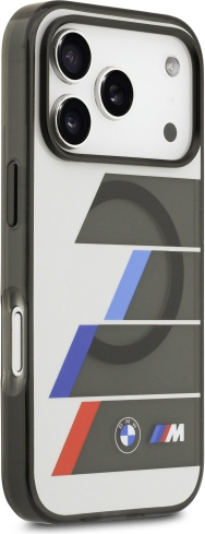 Чехол BMW M IML Metal Buttons Tricolor Lines MagSafe сочетает в себе спортивный стиль и современный минимализм, вдохновленный линейкой BMW M.