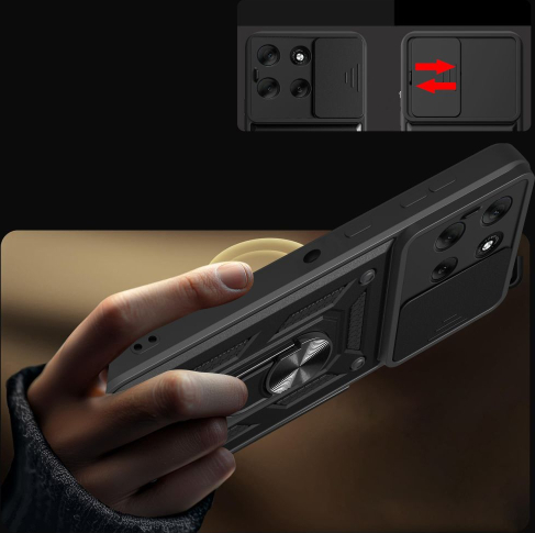 Оснащенная простым и удобным слайдером, который можно закрыть в любой момент, практичная крышка защищает объектив от неожиданных повреждений. Вращающееся на 360 градусов кольцо отлично подходит в качестве подставки для просмотра фильмов, захвата для пальцев, чтобы надежно удерживать телефон, или даже в качестве магнитного крепления для автомобиля.