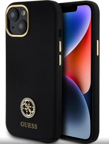 Guess Apple iPhone 15 Liquid Silicone 4G Strass Metal Logo Case Black
