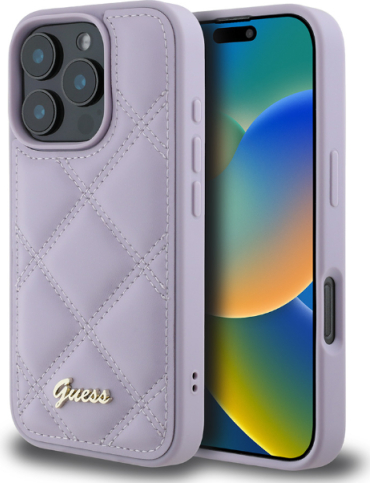 Этот оригинальный чехол Guess для iPhone 16 Pro покрыт сзади веганской кожей с подкладкой, с красивой «ромбовидной строчкой». Чехол украшен металлическим логотипом Guess.