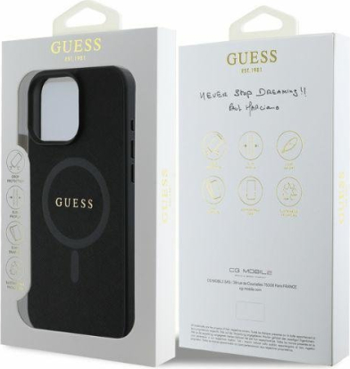 Чехол Guess iPhone 16 Pro Max MagSafe Saffiano Peony Black. Чехол Guess Saffiano Peony Stamp MagSafe Back Cover — идеальный аксессуар для вашего телефона и вашего наряда, сочетающий в себе функциональность и стиль.