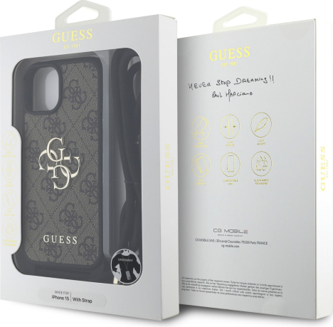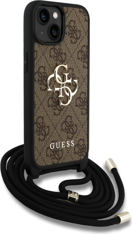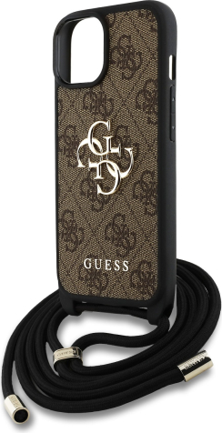 Guess PU 4G Metal Logo Crossbody Strap Case Защитный чехол для iPhone 15 / коричневый