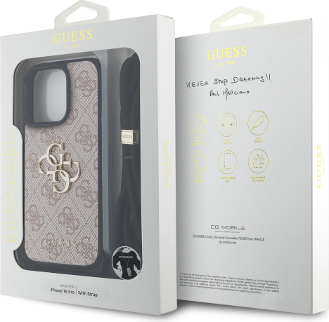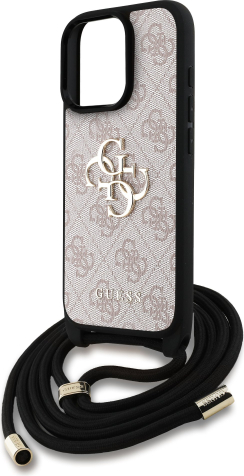 Guess PU 4G Metal Logo Crossbody Strap Case Защитный чехол для iPhone 16 Pro / розовый